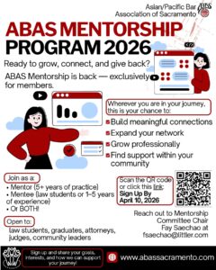 March 10, 2025-The Asian/Pacific Bar Association of Sacramento (ABAS) joins the American Bar Association, National Asian Pacific American Bar Association, our local affinity bar associations, and our members in supporting and upholding the rule of law. As API attorneys from diverse backgrounds practicing in the Sacramento Valley, we come from a storied tradition of holding local, state and federal governments